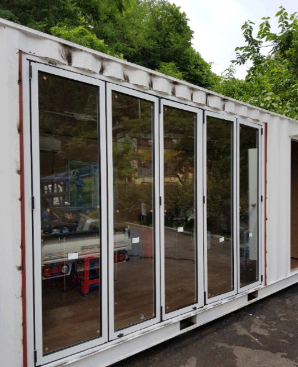 경기도양평에 위치한 상가건물 신축현장 1층 폴딩도어설치