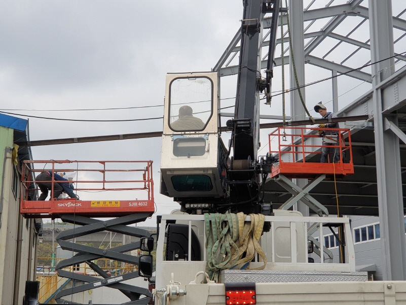 전기선이 지나도록 지지대를 설치하는 작업입니다.