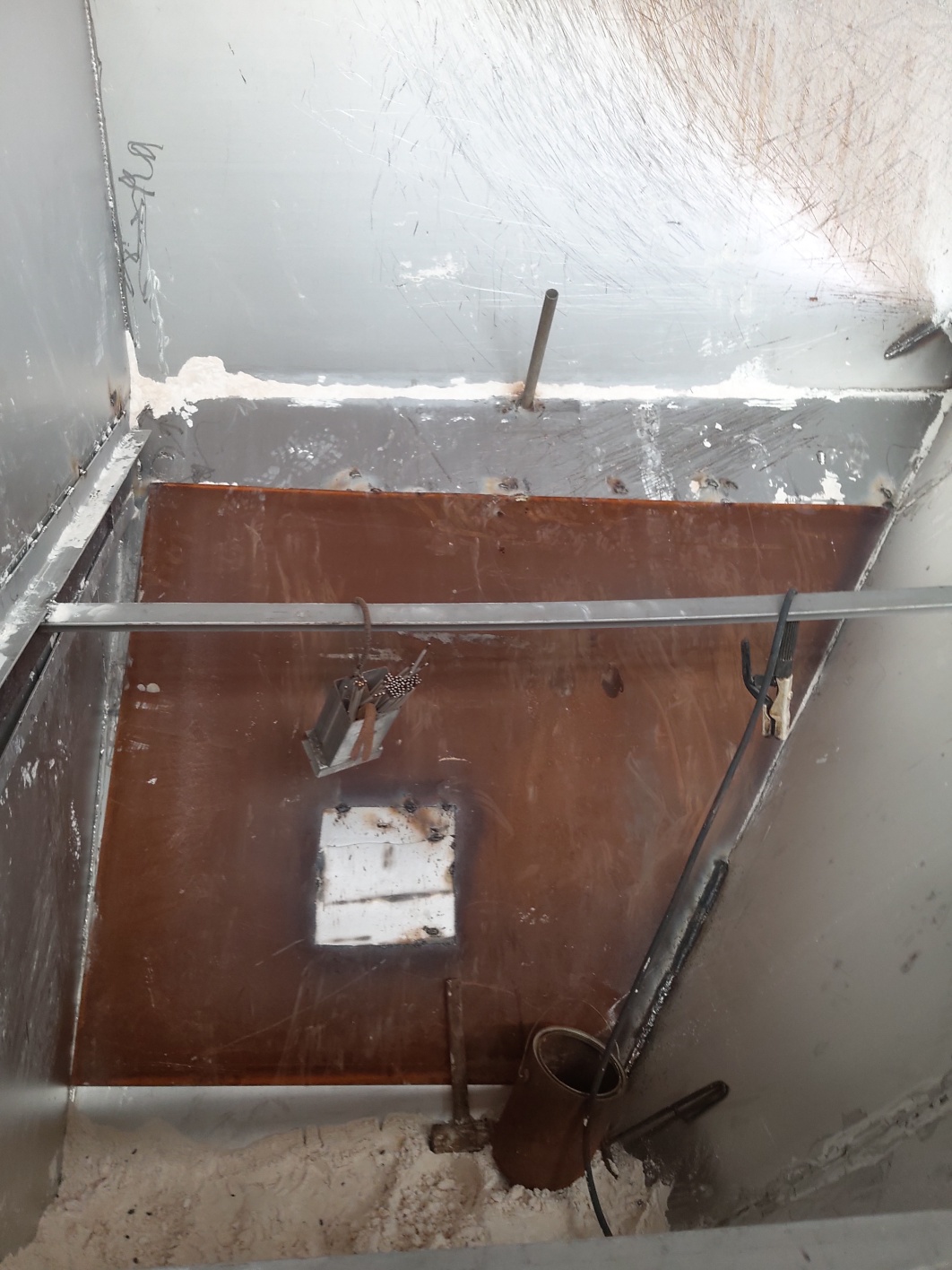 원료 투입구 호퍼에 무게로 인한 크렉이 발생하여